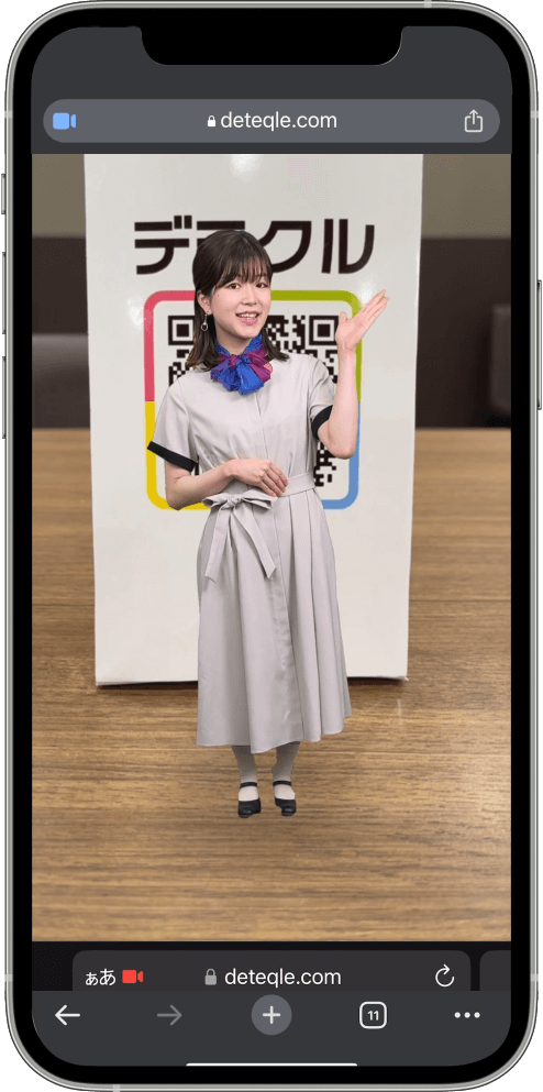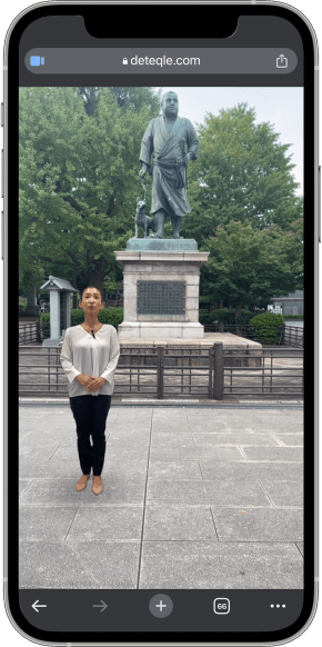 デテクルでは、撮影した人の動画から背景を自動で切り抜き、AR技術と組み合わせた表示をおこなっています。